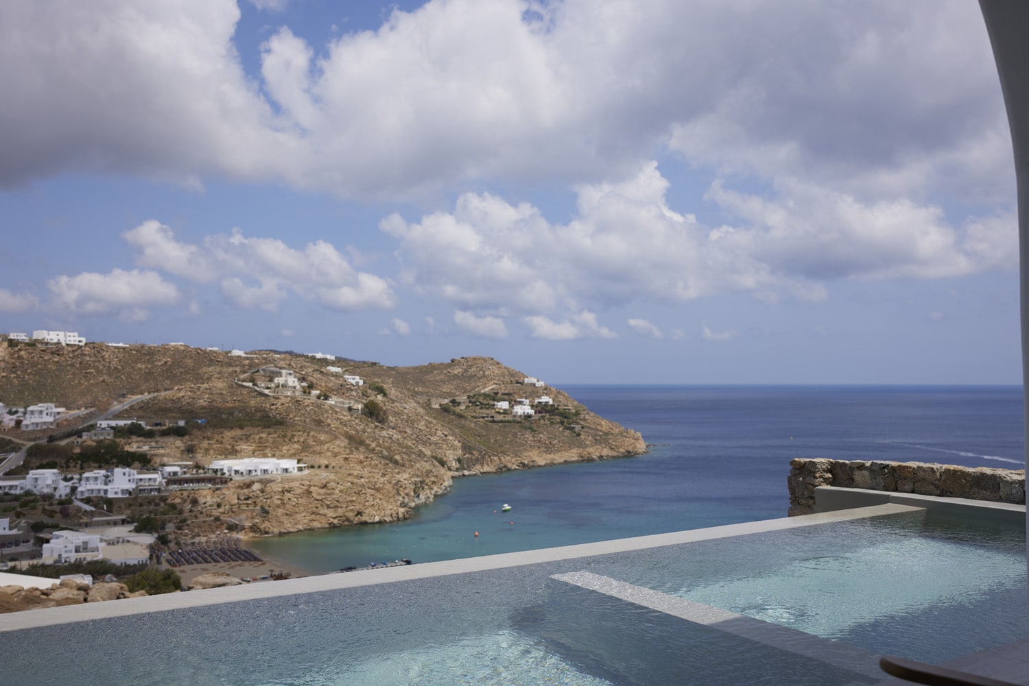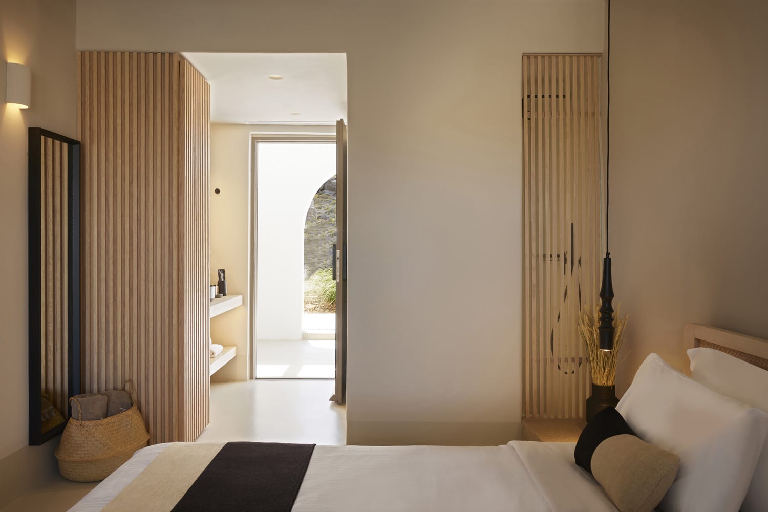 The subtlety of this room’s luxury is much more than a design approach; it is a statement: the architectural elements, the decoration, the color palette, and the view. Nothing is left to chance. It’s an idyllic escape, dressed in rocky brown and sparkling aquamarine.