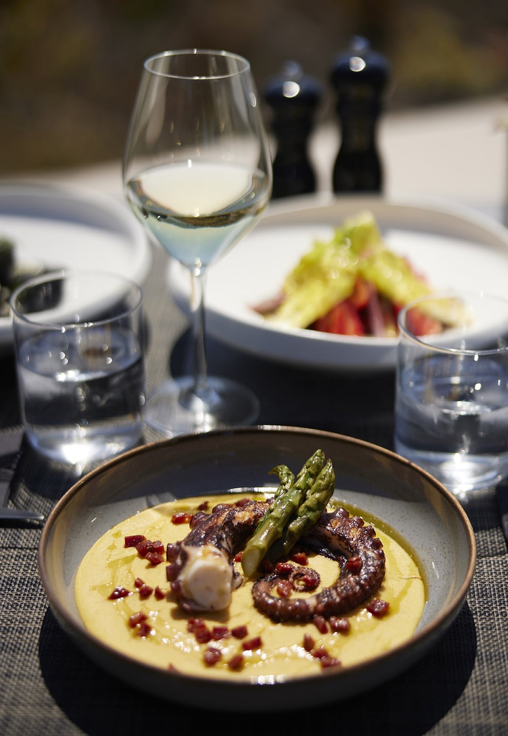 Santorini’s gastronomical landscape is as fascinating as the island itself. The extremely rare conditions - the climate, the soil, the location - became an opportunity to develop a unique ecosystem:cherry tomatoes, white aubergines, fava beans, capers, and the Assyrtiko grape. A kaleidoscope of local products - extraordinary in origin and taste - became the foundation for local cuisine since prehistoric times. This culinary continuity - interrupted only by the Caldera’s outbursts - has reached us today with a creative twist, available to enjoy all day in our restaurant - where its spectacular view is the perfect appetizer - in private or in-room dining.